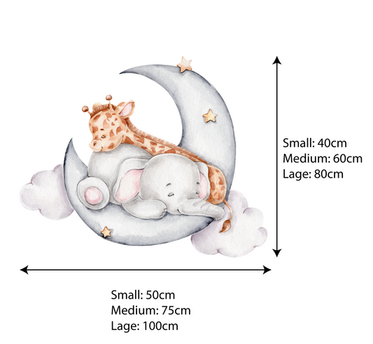Giraffe and Elephant wall sticker with Moon & Stars Wall Sticker for Baby Nursery