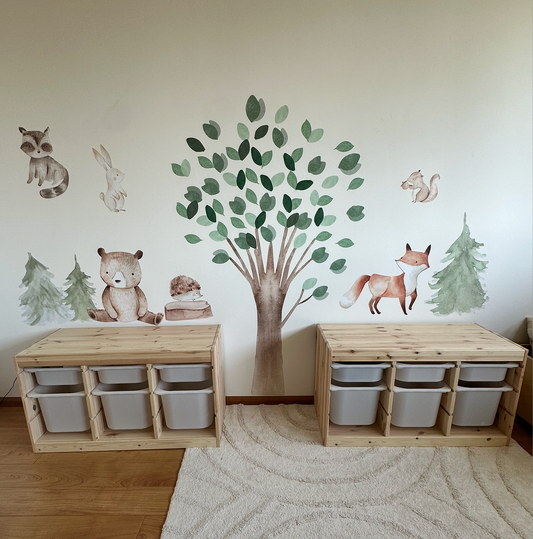 Large Forest Tree Wall Decal with Woodland Animals - Peel & Stick Nursery Sticker